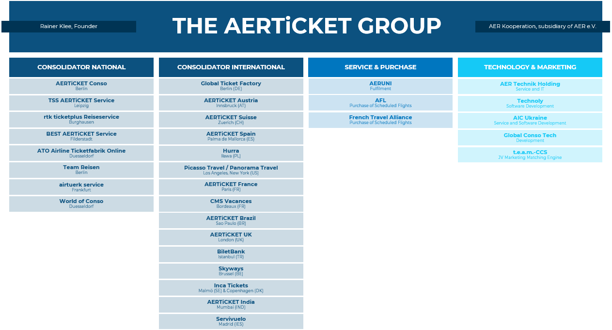 The AERTiCKET Group is one of the world's largest full-service consolidators. The group includes around 20 national and international consolidators.